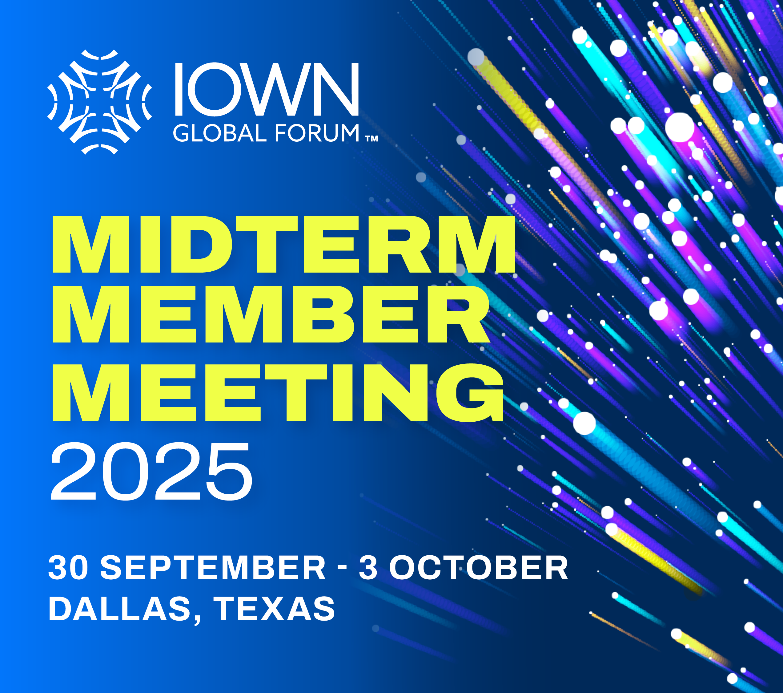 Please join the IOWN Global Forum for its Midterm Member Meeting 2025 on 30 September – 3 October 2025 in Dallas, TX, USA.