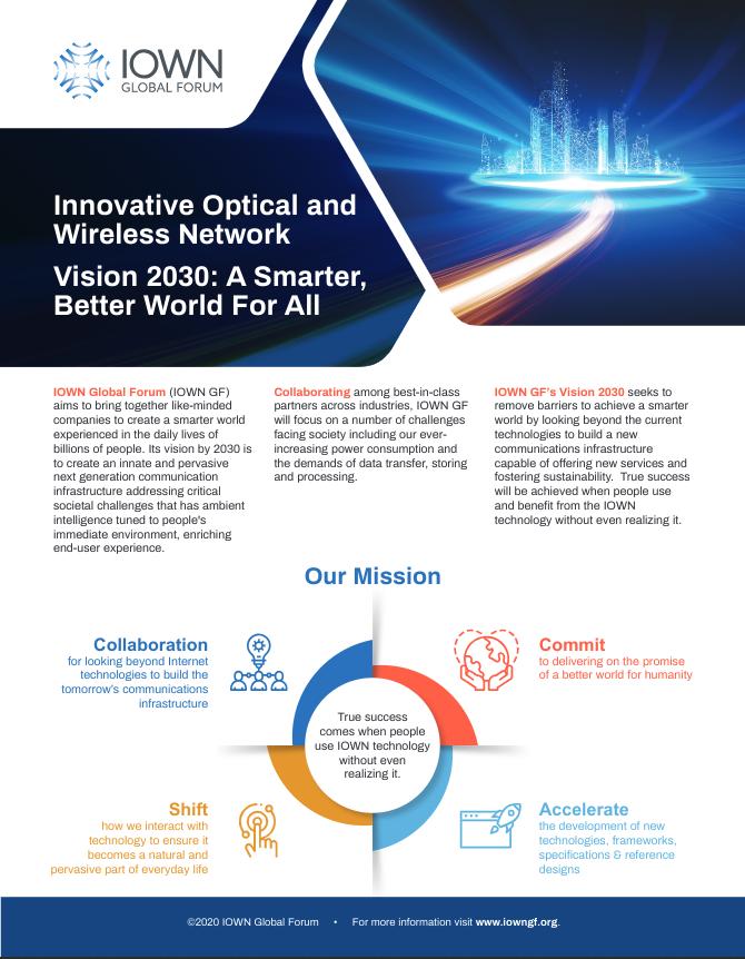 IOWN GF’s Vision 2030 seeks to remove barriers to achieve a smarter world by looking beyond the current technologies to build a new communications infrastructure capable of offering new services and fostering sustainability.